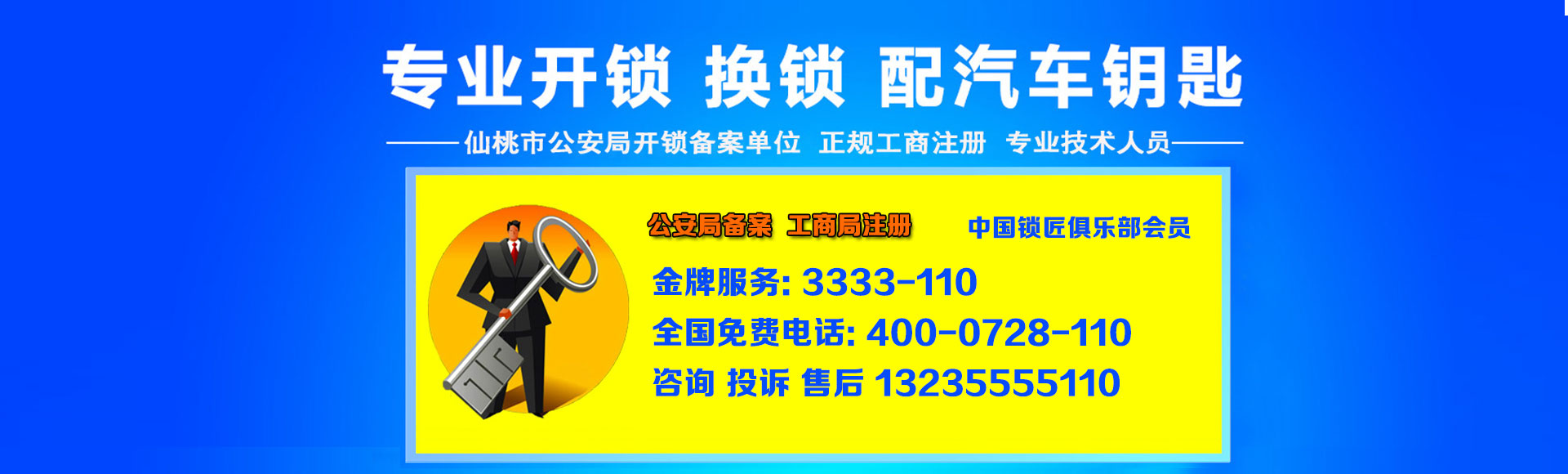 关于我们 湖北省仙桃市金钥匙锁匠服务中心成立于1994年,位于钱沟路与建设路交汇处。是江汉平原最大的锁匠服务中心之一,是经仙桃市工商局核准注册,公安局备案的仙桃市首家集锁具的销售、安装、维修、锁技培训于一体的专业机构。公司历经二十余年发展,一直保持健康稳定而快速的增长事态。本中心服务范围:开修金库门锁、ATM取款机、保险柜、汽车锁、防盗门锁及其他民用锁系列;汽车部专配汽车部芯片钥匙、遥控器、改装折叠钥匙。